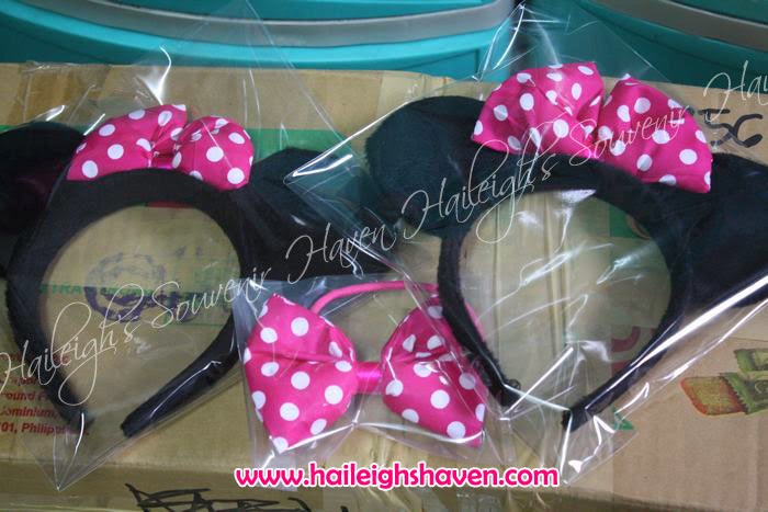 MOUSE EARS WITH FUCHSIA PINK BOW AND POLKA PONY TAIL