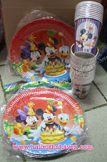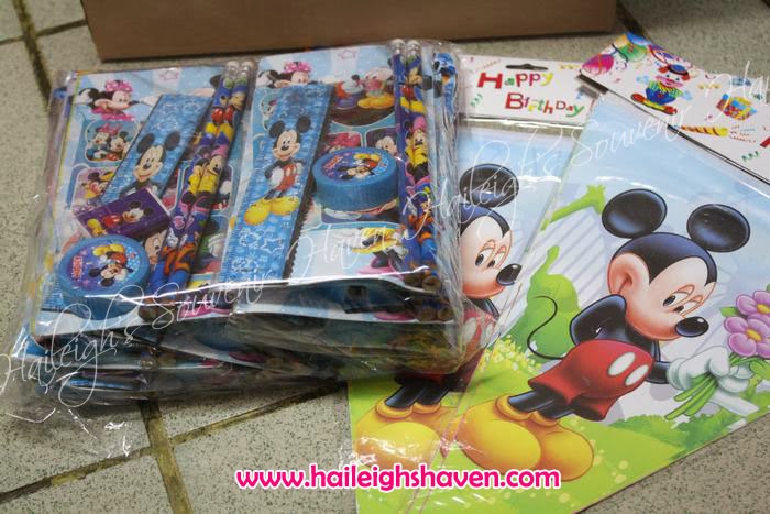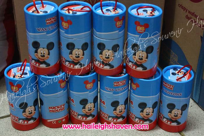 MICKEY CRAYONS, PENCIL SETS, FLAG BANNERS, PAPER PLATES, PAPER CUPS, DIE-CUT BALLOONS AND STUFFED TOY