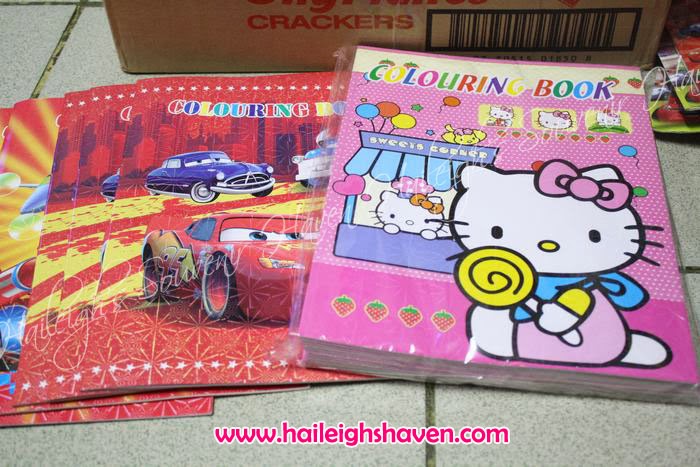 HELLO KITTY AND DISNEY CARS ITEMS: DRAWSTRING BAGS, COLORING BOOKS, STATIONERY SETS, CHARACTER PENS, PENCIL CASES, FOLDING FANS