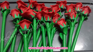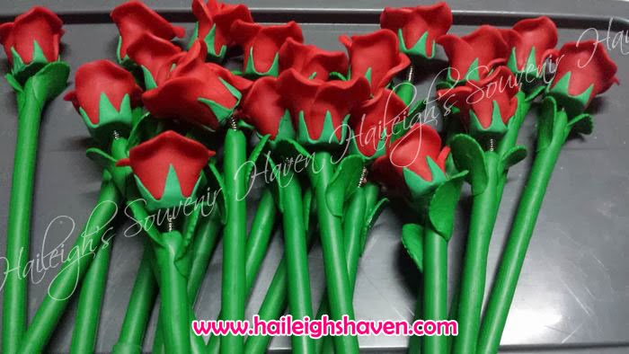 FLOWER PENS AS WEDDING SOUVENIRS: RED ROSES WITH TOBLERONE PACKAGING