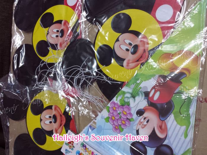 MICKEY AND FRIENDS COIN BANKS, SIGNATURE FRAME, MICKEY HEAD BALLOONS, PENCIL SETS, LOOT BAGS, PARTY HATS AND BANDERITAS